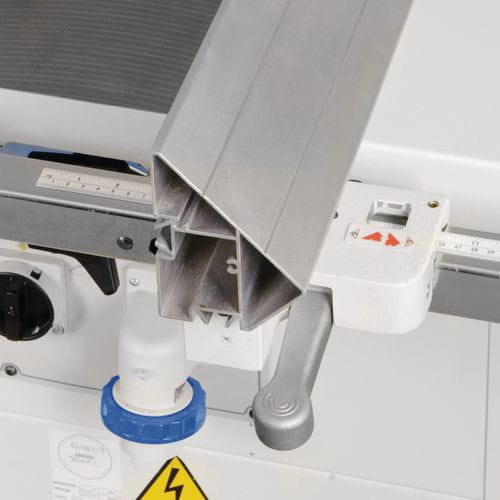 - Stabilny agregat piły zamocowany do stołu żeliwnego, gwarantujący precyzyjną pracę
