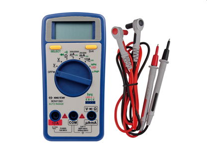 Test ciągłości / Test diód / Test tranzystorów hFE / wskaźnik poziomu baterii/ wyposażony w przewody pomiarowe