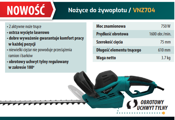 Nożyce do żywopłotu 750W VNZ704 Vander