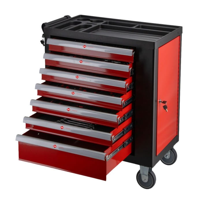 7 szuflad zapewnia idealną organizację narzędzi, umożliwiając wygodne przechowywanie.