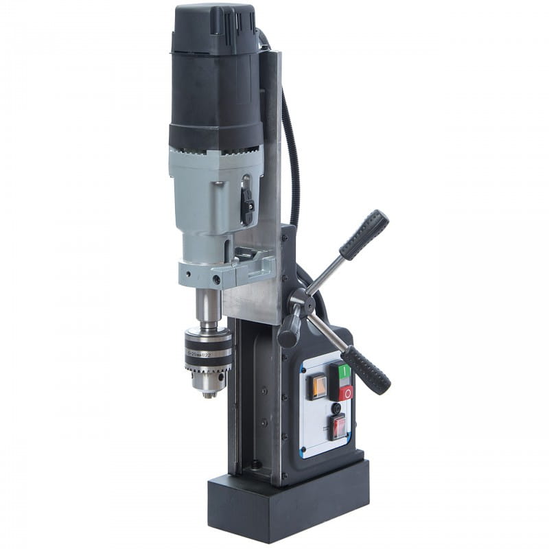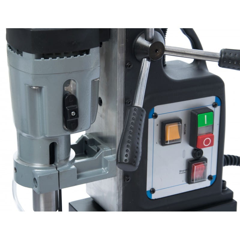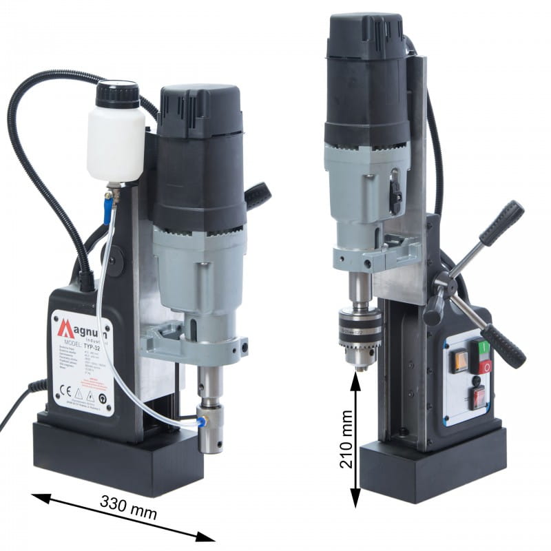 Wiertarko-gwinciarka marki MAGNUM ze stopą magnesową, to urządzenie profesjonalne przeznaczone do użytku przemysłowego. Model ten wyposażony jest w standardowy uchwyt stożek Morse'a MT3, dedykowany do precyzyjnego gwintowania, wiercenia frezami koronkowymi oraz wiertłami krętymi przy zastosowaniu odpowiednich uchwytów. Niewielka masa, duży skok roboczy oraz bardzo mocny magnes, to cechy wyróżniające wiertarkę MAGNUM spośród podobnych urządzeń. Wiertarka zapakowana jest w walizkę ułatwiającą transport i przechowywanie.