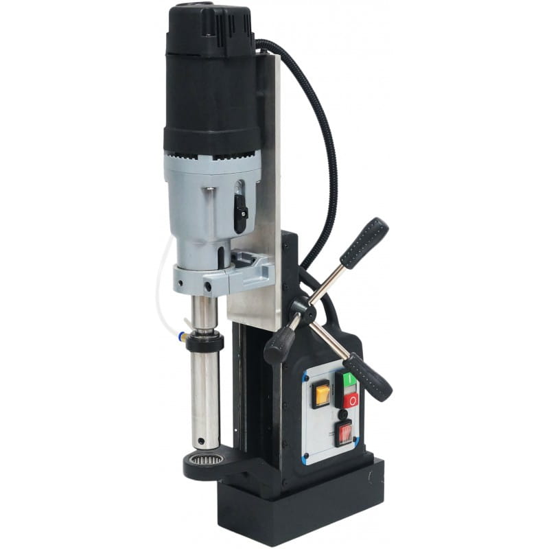 Wiertarko-gwinciarka marki MAGNUM ze stopą magnesową, to urządzenie profesjonalne przeznaczone do użytku przemysłowego. Model ten wyposażony jest w standardowy uchwyt stożek Morse'a MT3, dedykowany do precyzyjnego gwintowania, wiercenia frezami koronkowymi oraz wiertłami krętymi przy zastosowaniu odpowiednich uchwytów. Niewielka masa, duży skok roboczy oraz bardzo mocny magnes, to cechy wyróżniające wiertarkę MAGNUM spośród podobnych urządzeń. Wiertarka zapakowana jest w walizkę ułatwiającą transport i przechowywanie.