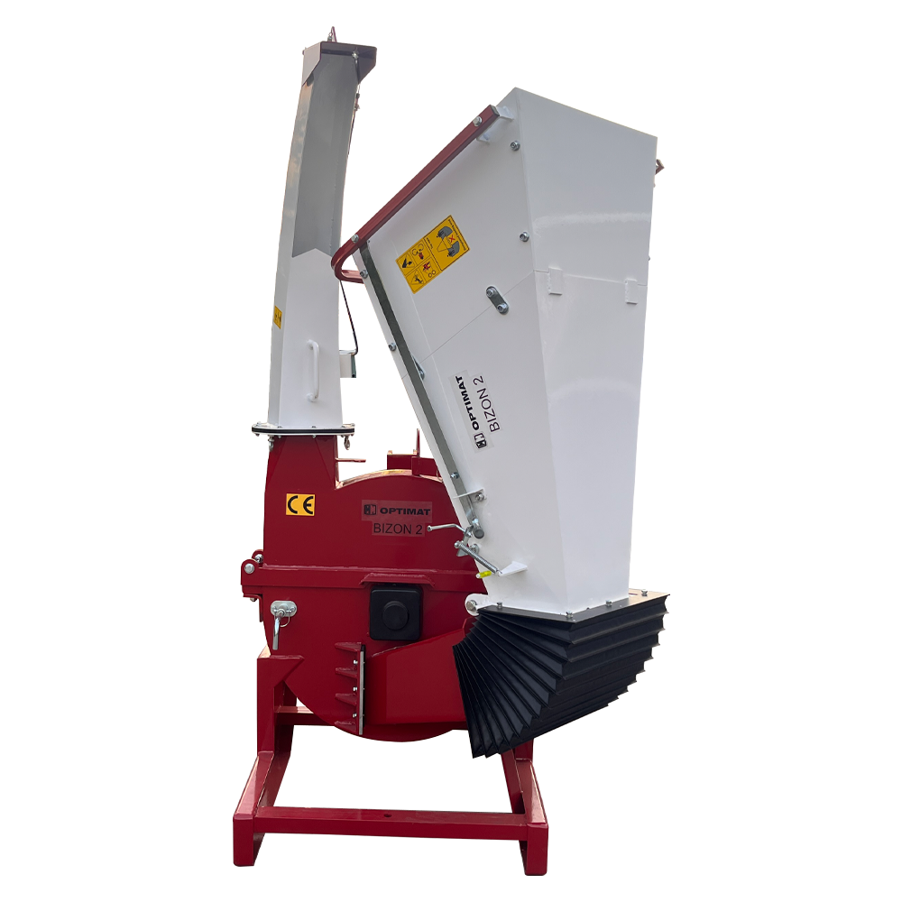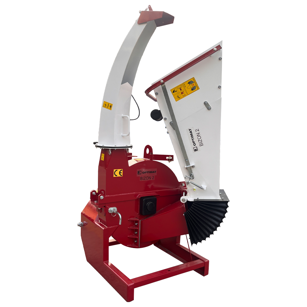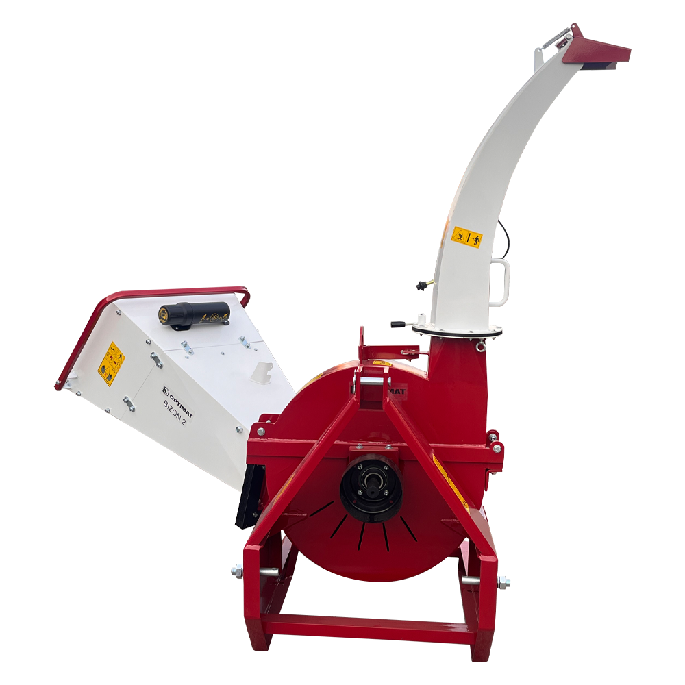 OPTIMAT BIZON 2 to wyjątkowo wydajny rębak do gałęzi i pni przeznaczony do współpracy z ciągnikami rolniczymi o mocy minimum 30 KM. Maszyna została zaprojektowana do intensywnej pracy przy rozdrabnianiu grubych gałęzi i kłód o średnicy do 150 mm, zachowując przy tym płynną i bezpieczną pracę układu napędowego ciągnika.