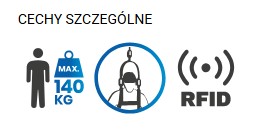 - Zabezpieczenie dla maksymalnej wagi użytkownika 140 kg (wraz z wyposażeniem i narzędziami)