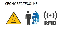 - Zabezpieczenie dla maksymalnej wagi użytkownika 140 kg (wraz z wyposażeniem i narzędziami)
