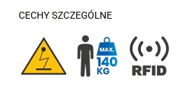 - Zabezpieczenie dla maksymalnej wagi użytkownika 140 kg (wraz z wyposażeniem i narzędziami)