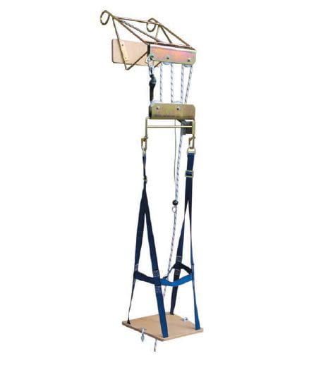 Ławka do prac na wysokości BA w komplecie z liną roboczą. Praca przy użyciu ławki wymaga dodatkowo stosowania sprzętu chroniącego przed upadkiem z wysokości. Możliwość opuszczania i podnoszenia się osoby siedzącej na ławce (przełożenie 1:4).
