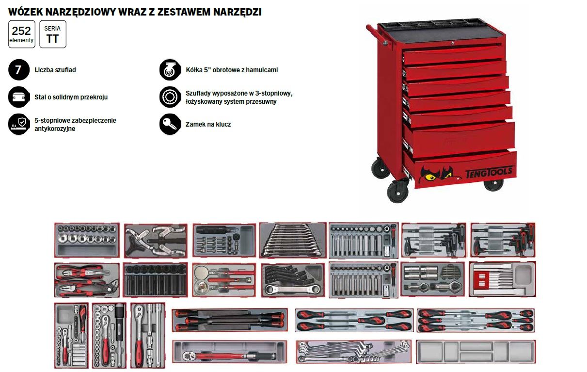 - Narzędzia dostarczane w 7-szufladowym wózku Teng Tools